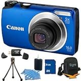 Canon Powershot A3300 16 MP Digital Camera with 5x Optical Zoom (Blue) Kit includes 8 GB Memory Card, Card Reader, Deluxe Carrying Case, Mini Tripod, & 3pc. Lens Cleaning Kit.